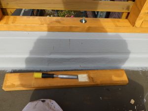 | ↑木材交換取り付け前の塗装 | ↑木材加工と塗装を同時に行うことができます |